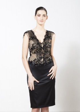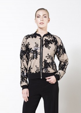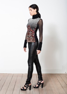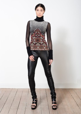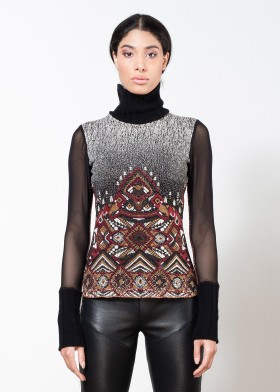 Shirt aus Jacquard-Jersey mit Maya Motiven und Rippenstrick-Rolli
