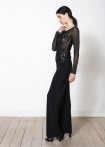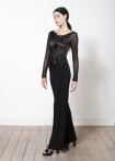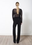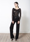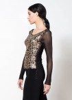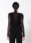 Tüllstretch Shirt mit Carmen-Ausschnitt und Rippenstrick-Besatz