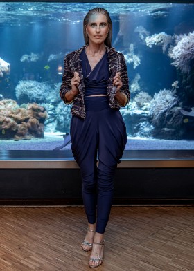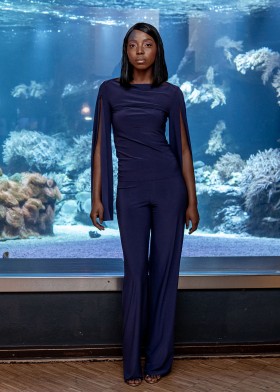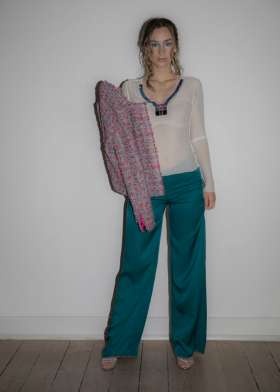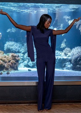 Waterfall Shirt aus Crêpe Jersey mit überschnittenem Arm und silbernen Lurexnähten