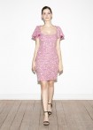 Jacquardkleid mit 3-D Effekt in zartem lindgrün mit Rundhals und Ärmelschlitzen, knieumspielend