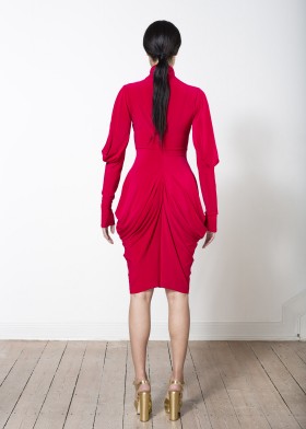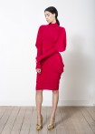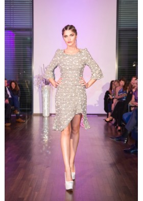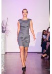 Schmales Etuikleid mit überschnittener Schulter aus eleganten, grauem Jeans Stoff mit betonten Nähten