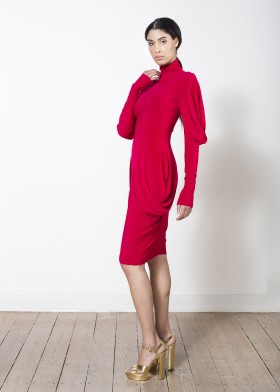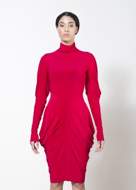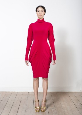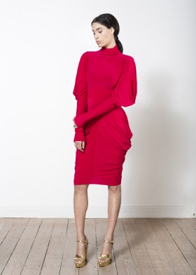 Leicht ausgestelltes, voll gefüttertes Kleid aus Wollpiqué in ivory mit kleinem Arm und rundem Halsausschnitt