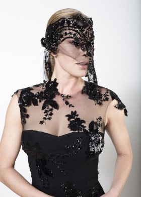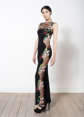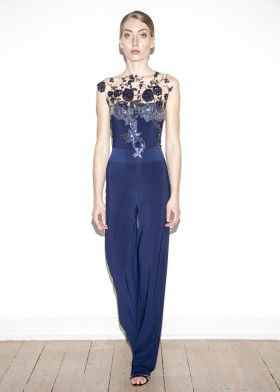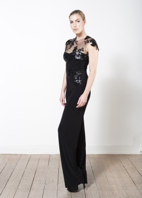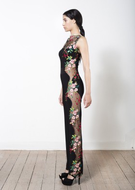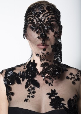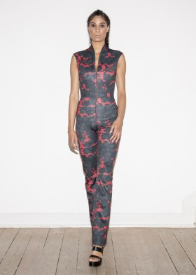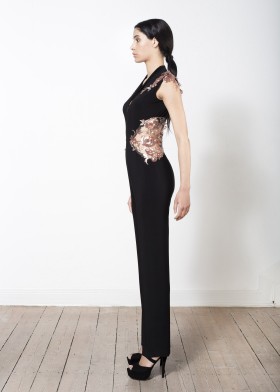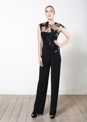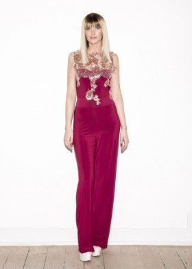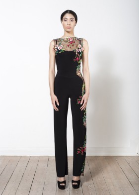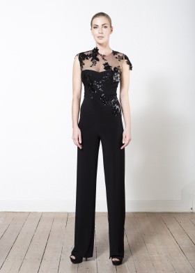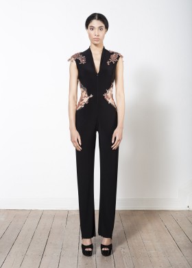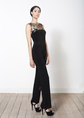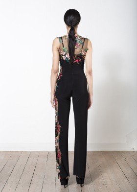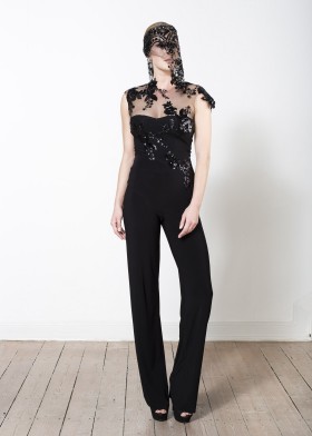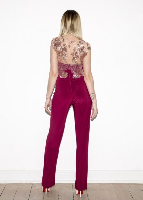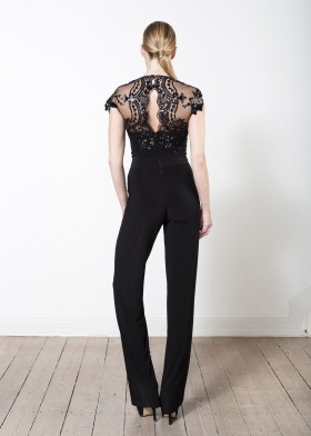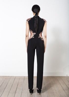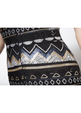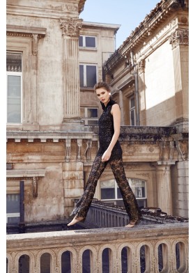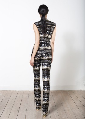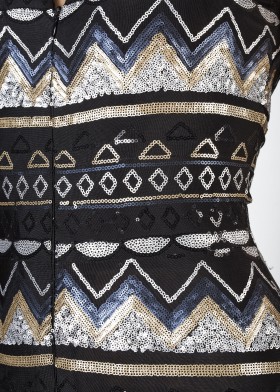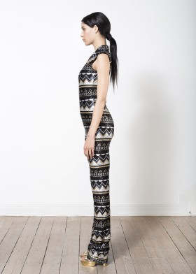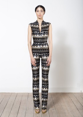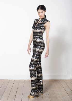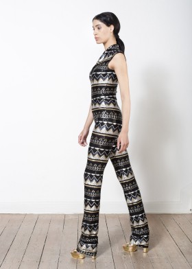 Catsuit aus pailletten-besticktem bi-elastischem Jersey mit Aztheken-Muster.