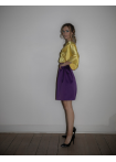 Hochtaillierter Rock aus italienischem, Multicolor-Goldlurex Tweed mit Fransenkante am Saum