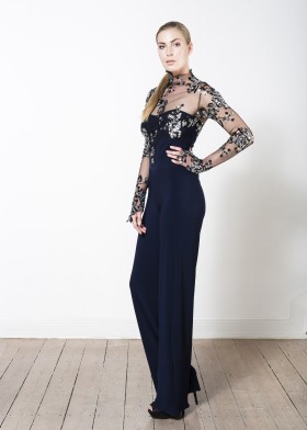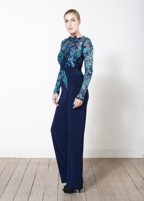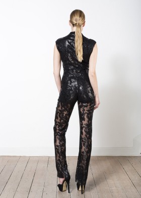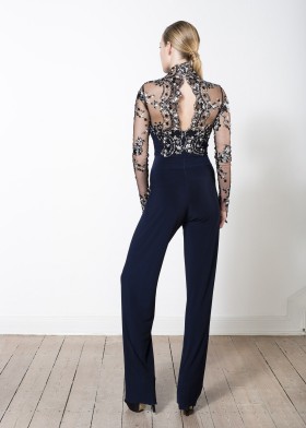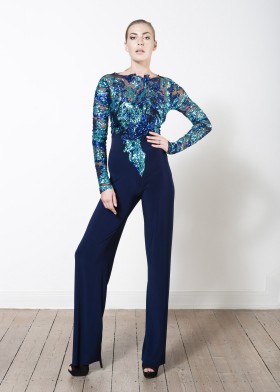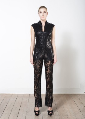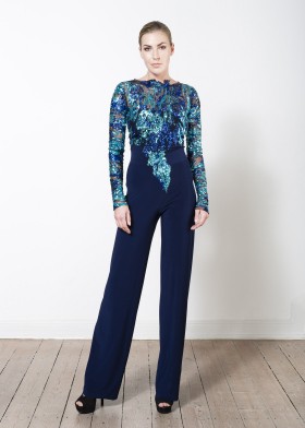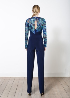 Catsuit aus pailletten-besticktem bi-elastischem Jersey mit Aztheken-Muster.