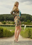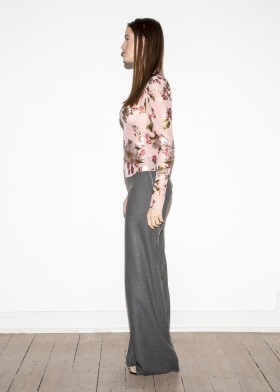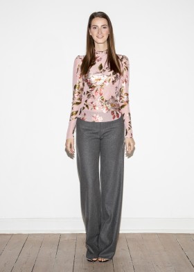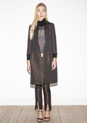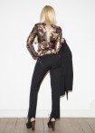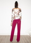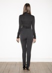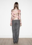 Doubliertes Tüllstretch-Shirt mit Strick-Rollkragen und Strickelementen an den Ärmeln in nude-schwarz