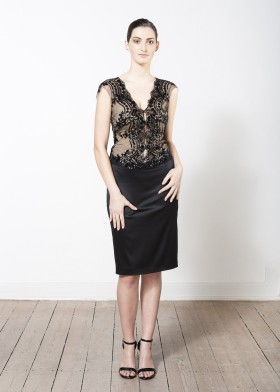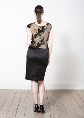 Fließender Rock in A-Linie aus Crêpe Jersey mit Satin-Paspelierung in der Taille