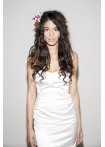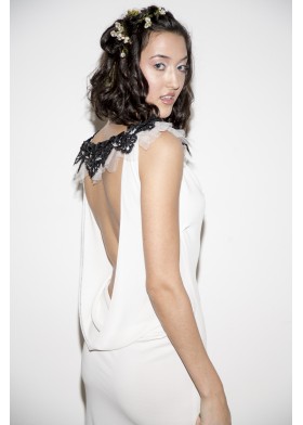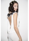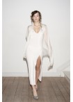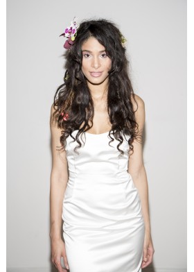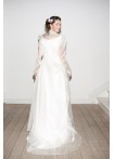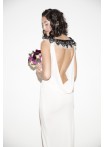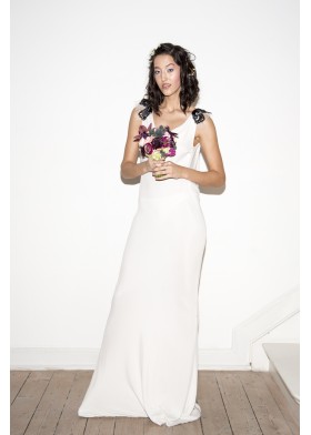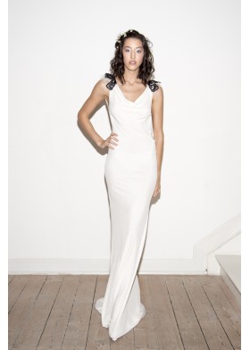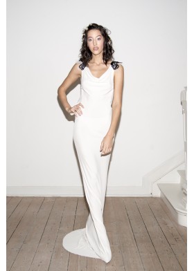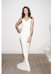 Extravagantes, kunstvoll drapiertes Herz-Jacquard-Brautkleid mit tiefem Dekolleté und langer Schleppe