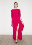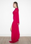 Elegantes, langes Wave Dress mit hohem seitlichem, asymmetrisch fallenden Wave-Schlitz, enger Taille und kleiner Schleppe