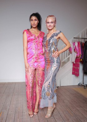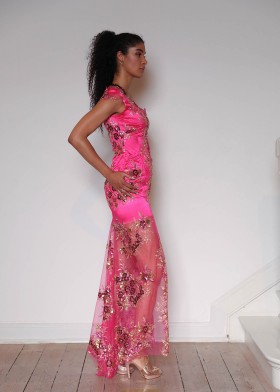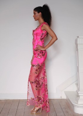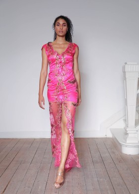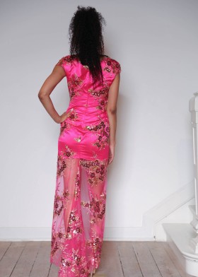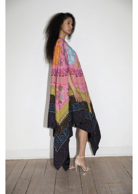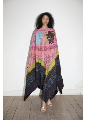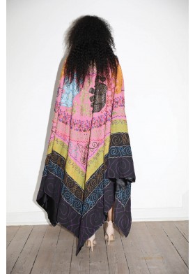 Poncho Kleid mit mehrfarbigen Stickereien, Applikationen und Pailletten