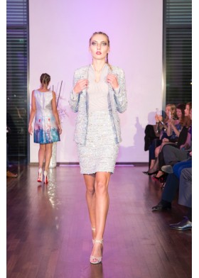 Tüll-Stretch-Shirt mit U-Boot-Ausschnitt, langen Ärmeln und Mermaid-Stickereien aus Perlen und Pailletten in ivory-silber