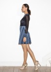 Rolli-Shirt mit Front und Ärmelbündchen aus ornamentalem Jacquard-Jersey und Tüllstretch-Ärmeln