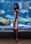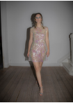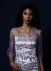 A-Kleid mit überschnittenem Arm aus irisierender Paillettenspitze