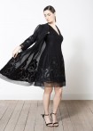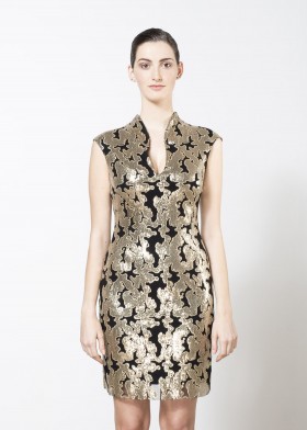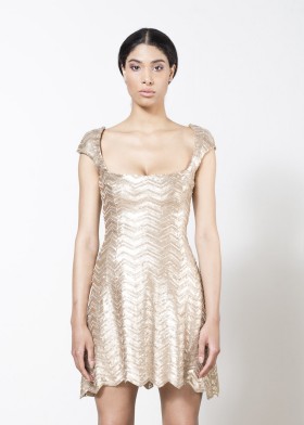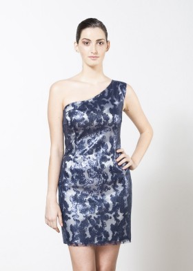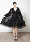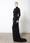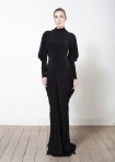 Elegantes, langes Wave Dress mit hohem seitlichem, asymmetrisch fallenden Wave-Schlitz, enger Taille und langer Schleppe