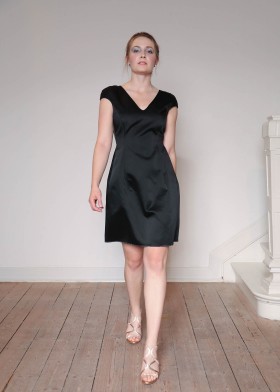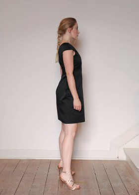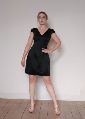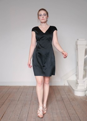 Elegantes, langes Wave Dress mit hohem seitlichem, asymmetrisch fallenden Wave-Schlitz, enger Taille und kleiner Schleppe
