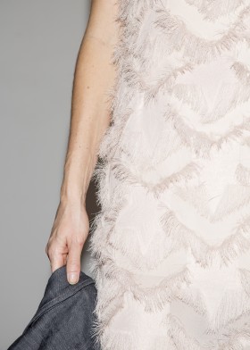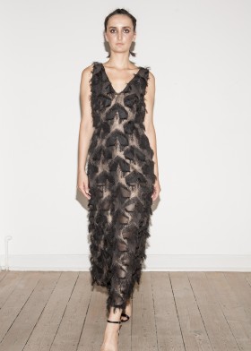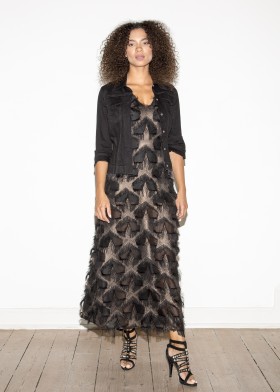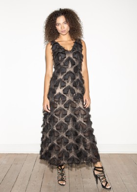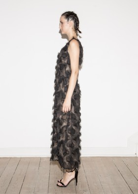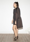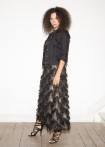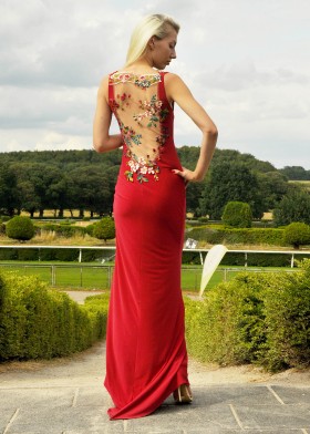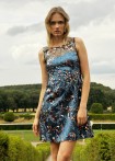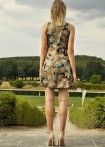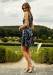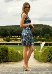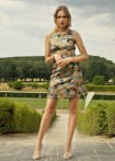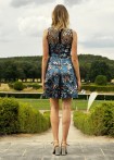 Kurzes, ärmelloses Disco-Dress in A-Linie, unterlegt mit farbigem Bustierkleid aus Satinstretch