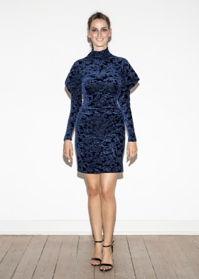 Kurzes, figurbetontes Kleid mit seitlichen, mit transparentem Tüll unterlegten Ellipsen Cut Outs