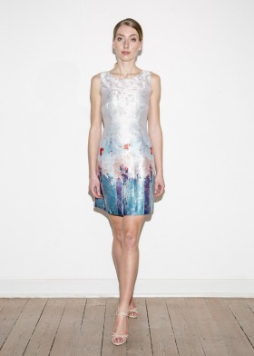 Schmales, kurzes Action-Paint Etuikleid mit U-Boot Ausschnitt in limiterter Edition