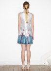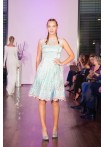 Kurzes Kleid in A-Linie in Türkis- und Aquatönen mit Mohnblütenprint, silbernen Lurexeinwebungen und mintfarbendem Satinfutter in limitierter Edition