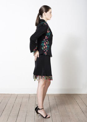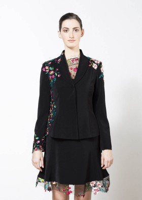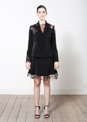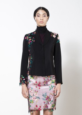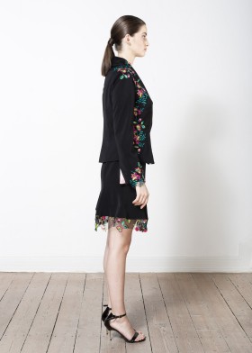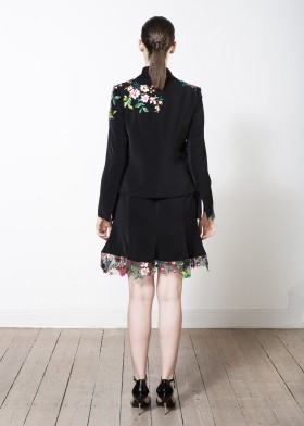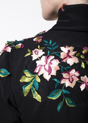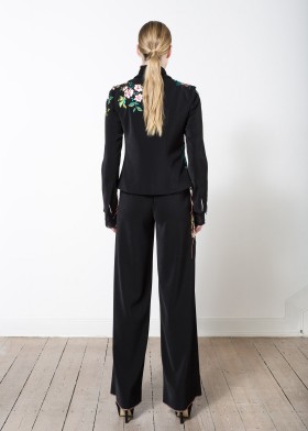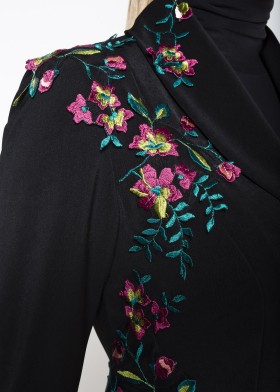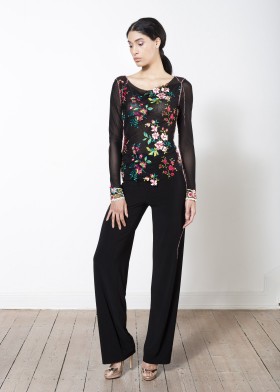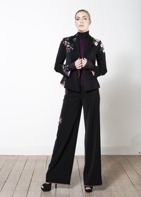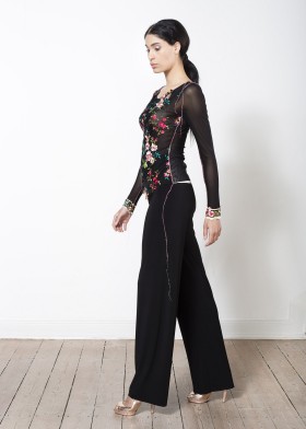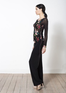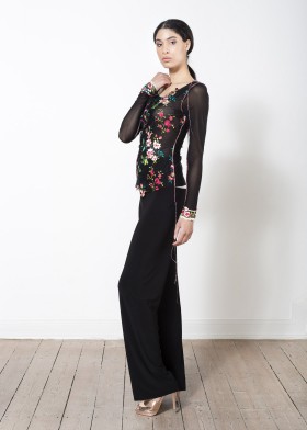 Mit diesem raffinierten, einzigartigen Jumpsuit aus Crêpe-Jersey ziehen sie garantiert alle Blicke auf sich! Der Jumpsuit verzaubert besonders durch das seitliche Cutout, welches mit der traumhaften, halbtransparenten, floralen Spitze appliziert ist. Durch die multicolore Spitze ergeben sich viele Farbkombinationsmöglichkeiten. Die hochwertige Spitze verziert ebenfalls Rücken und Décolletté. Dieser Jumpsuit verleiht Ihnen eine verführerische Eleganz. Der Crêpe Jersey sorgt für einen optimalen Tragekomfort und das locker geschnittene Bein garantiert ausreichend Bewegungsfreiraum. Der Schnitt formt eine tolle Figur und betont eine schmale Taille. Der Jumpsuit ist der optimale Begleiter für einen Ball, eine Cocktailparty oder ein Dinner Date. Kombinieren Sie ihn mit hohen Schuhen, um das Bein optisch zu strecken. Wählen Sie dazu unsere vegane Felljacke oder alternativ unseren Duchesse Mantel für kältere Abendstunden.