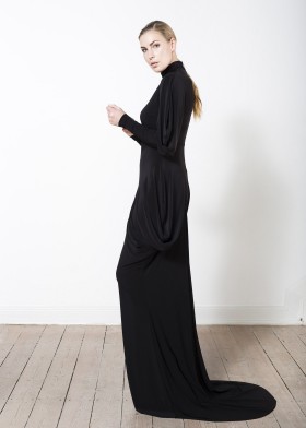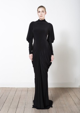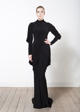 Knielanges Waterfall Dress aus Crêpe-Jersey mit langem Arm