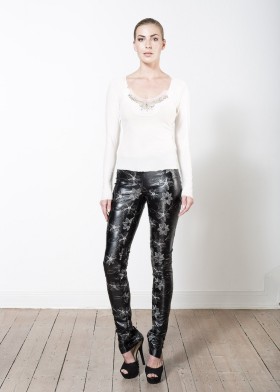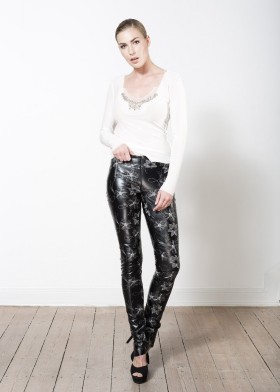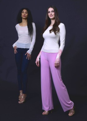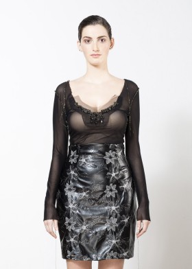 Verleihe deinem Look einen Hauch von Magie mit unserem Tüll-Stretch-Shirt in Ivory. Das Shirt besticht durch seinen eleganten U-Boot-Ausschnitt und lange, zarte Ärmel, die kunstvoll mit aufwändigen Mermaid-Stickereien geschmückt sind. Die filigranen Perlen und funkelnden Pailletten, die an den Ärmelabschlüssen zum Leben erwachen, bringen die verspielte Schönheit der Meereswelt zum Ausdruck. Die goldenen Lorex-Nähte setzen zusätzliche Akzente und verleihen dem Shirt einen Hauch von Luxus. Ein echtes Statement-Piece für jedes Event – sei es im Alltag oder für besondere Anlässe.