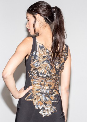 Kurzes figurbetontes A-Kleid aus Crêpejersey mit Waterfall-Dekolleté