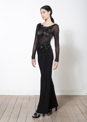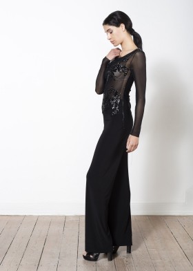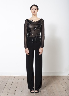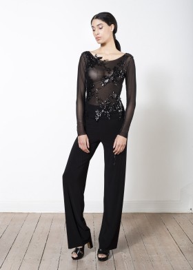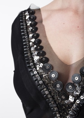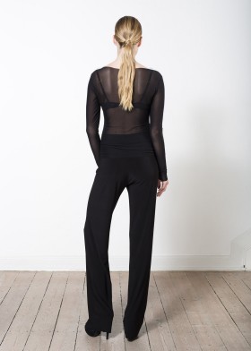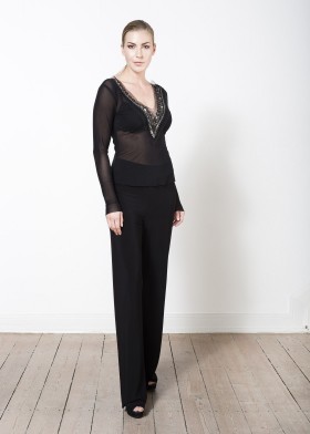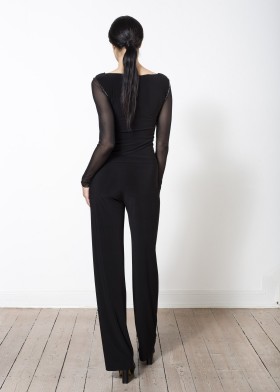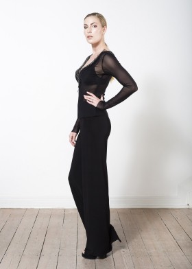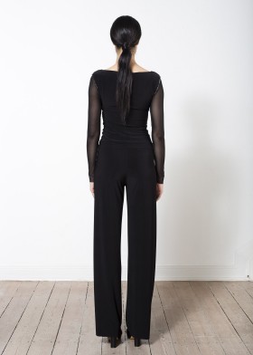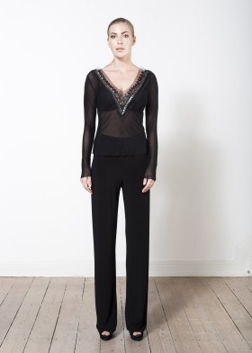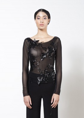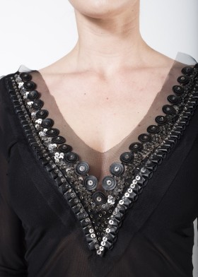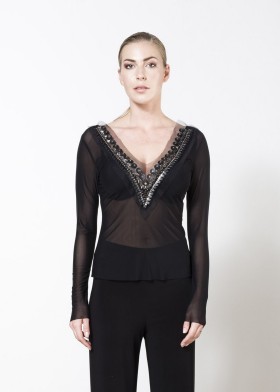 Shirt aus Tüllstretch mit tiefem Rund-Ausschnitt und Strass-Collier