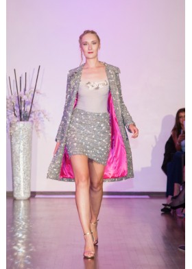 Kurzer, gerader Tweed Rock in grey
