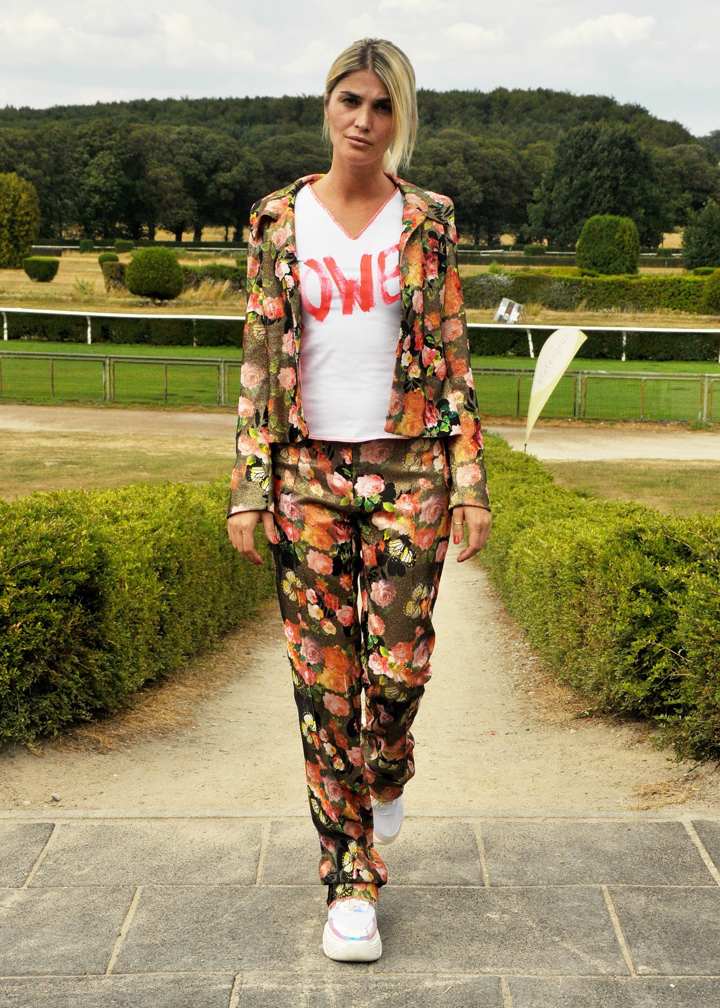 Diese Slim Pants mit gesteppter Bügelfalte besticht durch ihren auffälligen, mehrfarbigen Print. Der floral bedruckte Lurexjacquard ist bi-elastisch und überzeugt somit nicht nur durch seine besondere Optik, sondern ebenso durch seinen hohen Tragekomfort. Der Print besteht aus zauberhaften Blüten und Schmetterlingen, welche so plastisch wirken, als würden sie gleich weiter zur nächsten Blüte fliegen. Der schmale aber dennoch lässige Schnitt sorgt für ausreichend Bewegungsfreiheit. Die gesteppte Bügelfalte verleiht der Hose eine elegante Note. Kombinieren Sie die Slim Pants für den perfekten Look mit unserer farblich passenden Jacke mit Spatenkragen und unserem Power Woman T-Shirt.