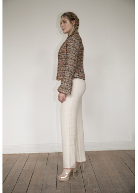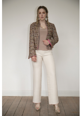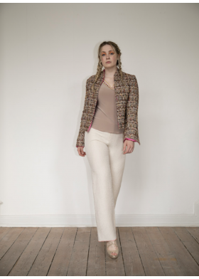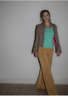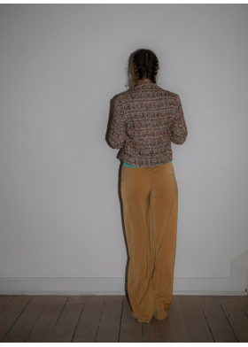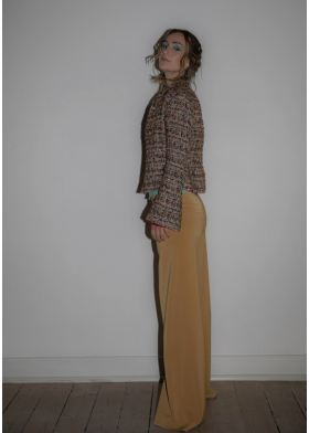 Die Super wide Pants überzeugt durch ihre puristische Eleganz. Der hochwertige braune Jersey sorgt für in Kombination mit der Schnittführung für hohen Tragekomfort. Die Hose wird mit der labeltypischen Gold-Lurexkante am Saum abgerundet. Geschlossen wird die Hose mithilfe eines farblich abgestimmten, nahtfeinen Reißverschluss. Tragen Sie zu der Super wide Pants hohe Schuhe, um ihre Beine optisch zu verlängern. Die Hose ist vielseitig kombinierbar. Stylen sie dazu im Alltag unser Shirt mit V-Ausschnitt-Applikation in mint und unsere braune Tweedjacke mit pinkem Duchesse-Stretch Futter und Ärmelschlitzen. Wählen Sie alternativ dazu für einen Tag im Office Bluse und Blazer. Oder stylen sie die Hose für ein Afterwork-Event mit einem unserer glamourösen Spitzenshirts.