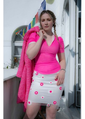 Der Tweedrock ist Teil einer Limited Edition. Er besteht aus hochwertigem, mehrfarbigen Tweed, wobei die Farben Pink und Türkis besonders hervorstechen. Der Rock ist figurbetont geschnitten und hat eine hohe Taille. Die Fransenkante rundet den Rock optisch ab und findet sich am passenden Tweedmantel wieder. Der Rock eignet sich durch seine leichte Verarbeitung ohne Futter hervorragend für Frühjahr und Sommer. Kombinieren sie zu dem Rock um den perfekten Look zu kreiern unseren passenden Tweedmantel mit High Collar und Rocco-Arm. Wählen Sie außerdem dazu unser pinkes Rocco-Shirt, dessen Farbe sich in dem Tweed wiederfindet.