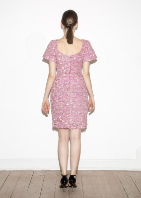 Tweed Long Jacket in ivory mit orangen Akzenten