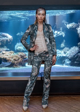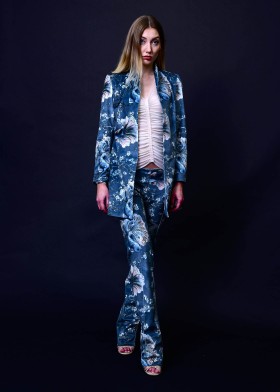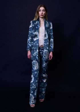 Pants made of medium-weight velvet with koi and cherry blossom motifs