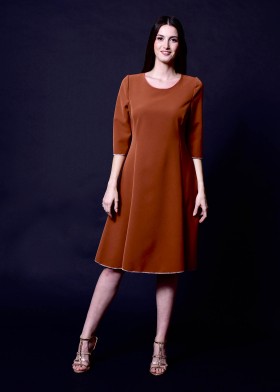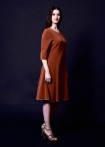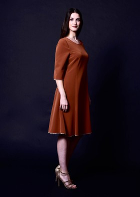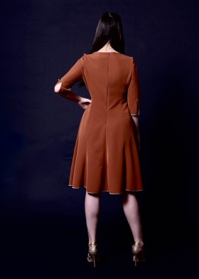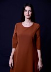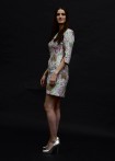 Jacquard dress in delicate light green with 3D effect, round neckline, and elegant sleeve slits, knee-length.