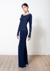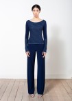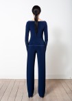 Jumpsuit made out of wool stretch satin with long sleeves & loose-fitted leg.