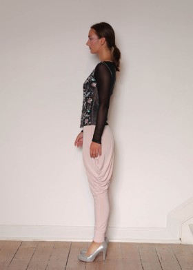 Long-sleeved shirt with dragonfly embroidery in pastel and gold tones
