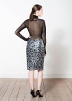 Form-fitting jacquard jersey mini skirt with Mayan motifs