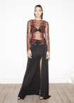 Long-sleeved, high-necked top made from semi-transparent, intricate fan lace
