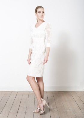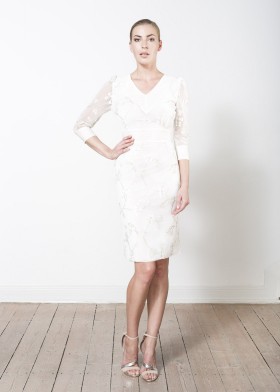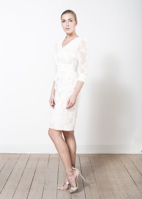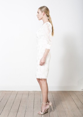 Short bolero made of ivory duchesse with ¾ sleeves and sleeve slits