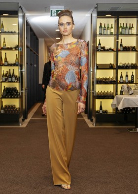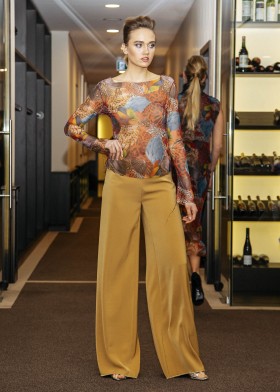 Long-sleeved, semi-sheer top made from delicate chiffon jersey interwoven with gold and silver threads
