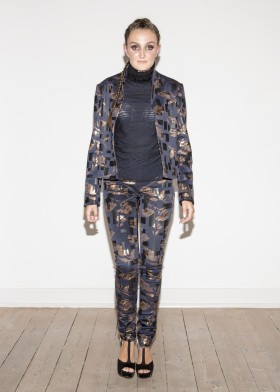 Long-sleeved star shirt made of doubled tulle in ivory with two-tone sequin embroidery