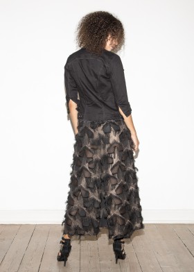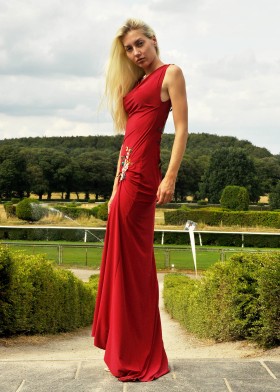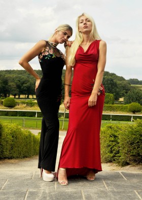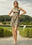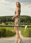 Short, sleeveless disco dress in A-line, underlaid with colored bustier dress made of stretch satin