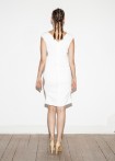 Short, figure-hugging dress with side ellipse cut-outs underlaid with transparent tulle