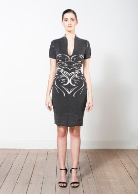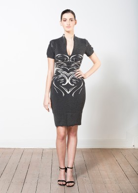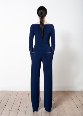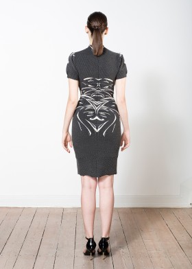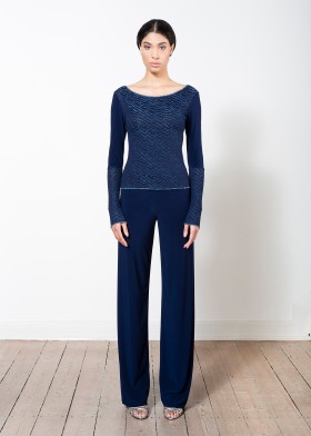 A wardrobe classic! Flatter your figure with this soft turtleneck dress made from the finest French herringbone jersey. The royal blue lurex effects and semi-transparent sleeves with cuffs give this dress an elegantly refined appeal. Wear it with your business blazer for a sophisticated office look, with heels and a pair of statement earrings for your understated cocktail party look.