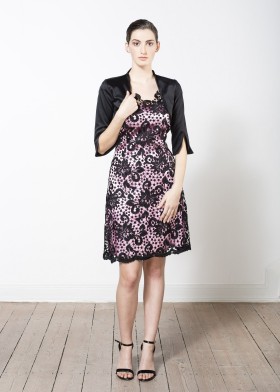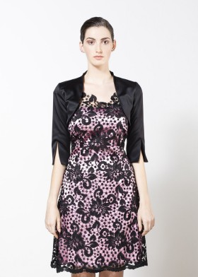 Short bolero made of black duchesse with 3/4 sleeves and sleeve slits