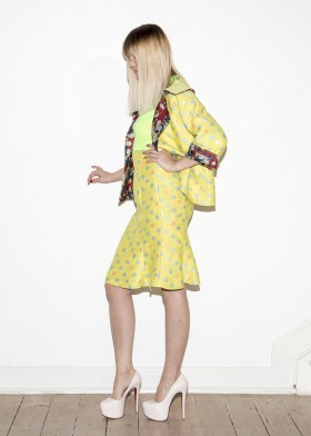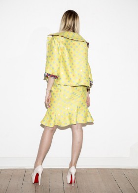This reversible jacket made of high-quality jacquard is a real designer it-piece! The multicolored, floral print ensures that you will attract everyone's attention. The yellow dotted side is also a special highlight. The reversible jacket can be combined flexibly thanks to its variety of colors and will add that certain something to any outfit. The casual-elegant cut plays advantageously around your figure. The high-quality jacquard provides the necessary comfort. Style the reversible jacket casually with your favorite jeans and matching sneakers. The perfect combination would also be our mini skirt with a floral print and our shirt with blue tattoo lace. If you wear the yellow dotted side out, choose our jacquard flounce skirt and our matching Rocco reversible shirt in neon green. The reversible jacket is a worthwhile investment, as you get two jackets in the form of one and it combines well with simple basics. Together with our matching skirts, you get two perfect combinations for the office or your next cocktail event.