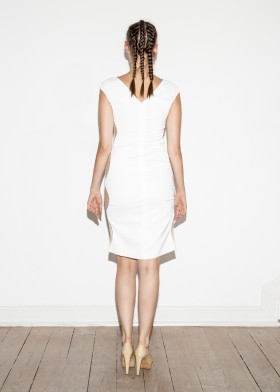 This blazer impresses with its brilliant lines. The ellipse cut-outs on the sides of the arms are lined with transparent tulle and provide seductive insights. The cut-outs extend from the shoulder to the sleeve hem. The waist belt emphasizes your figure and creates a slight hourglass silhouette. The look can also be easily changed by tying the waist belt: a bow communicates playfulness, while a simple knot shows straightforwardness. The shawl collar conjures up a great décolleté depending on how it is tied. For the perfect look, combine the blazer with the matching trousers with an elliptical cut-out and one of our sumptuously embellished shirts made of doubled tulle. Some of the ensembles are also available in black. Talk to us!