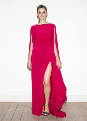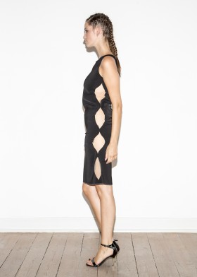 This short, sleeveless crepe jersey dress boasts sophisticated lines. It is inspired by the perfectly shaped gathering and pleating of antique garments. You will feel like a modern Greek goddess in this dress. The exciting, asymmetrical, two-tone striped appliqué draws the eye from the neckline straight to the seductive leg slit. The leg slit makes your legs look longer. Choose high heels with this dress to show off your legs to the full. You'll wow everyone around you at the next cocktail party or on your summer vacation. The high-quality crepe jersey ensures a high level of comfort. The fabric is crease-resistant and therefore suitable for traveling. If you are looking for a casually elegant yet seductive dress, the short, sleeveless crêpe jersey dress is definitely the right choice.