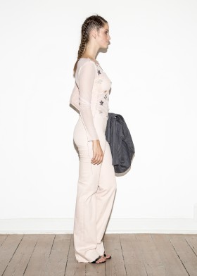 This denim long blazer in neutral gray is the perfect combination of elegant and casual. The clean, straight cut is timeless and classic, while the robust but fine denim fabric gives the long blazer a casual, sporty touch. Thanks to the neutral color, the long blazer can be combined in a variety of ways. The long blazer has a shawl collar and is unlined. This makes it ideal for the transition between seasons. Combine the long blazer with our star shirt and our jeans in rosé, for example. Alternatively, choose our tulle shirt in ivory and our matching jeans in gray. You can also wear the long blazer with a dress. Exude effortless elegance in this timeless, versatile basic!